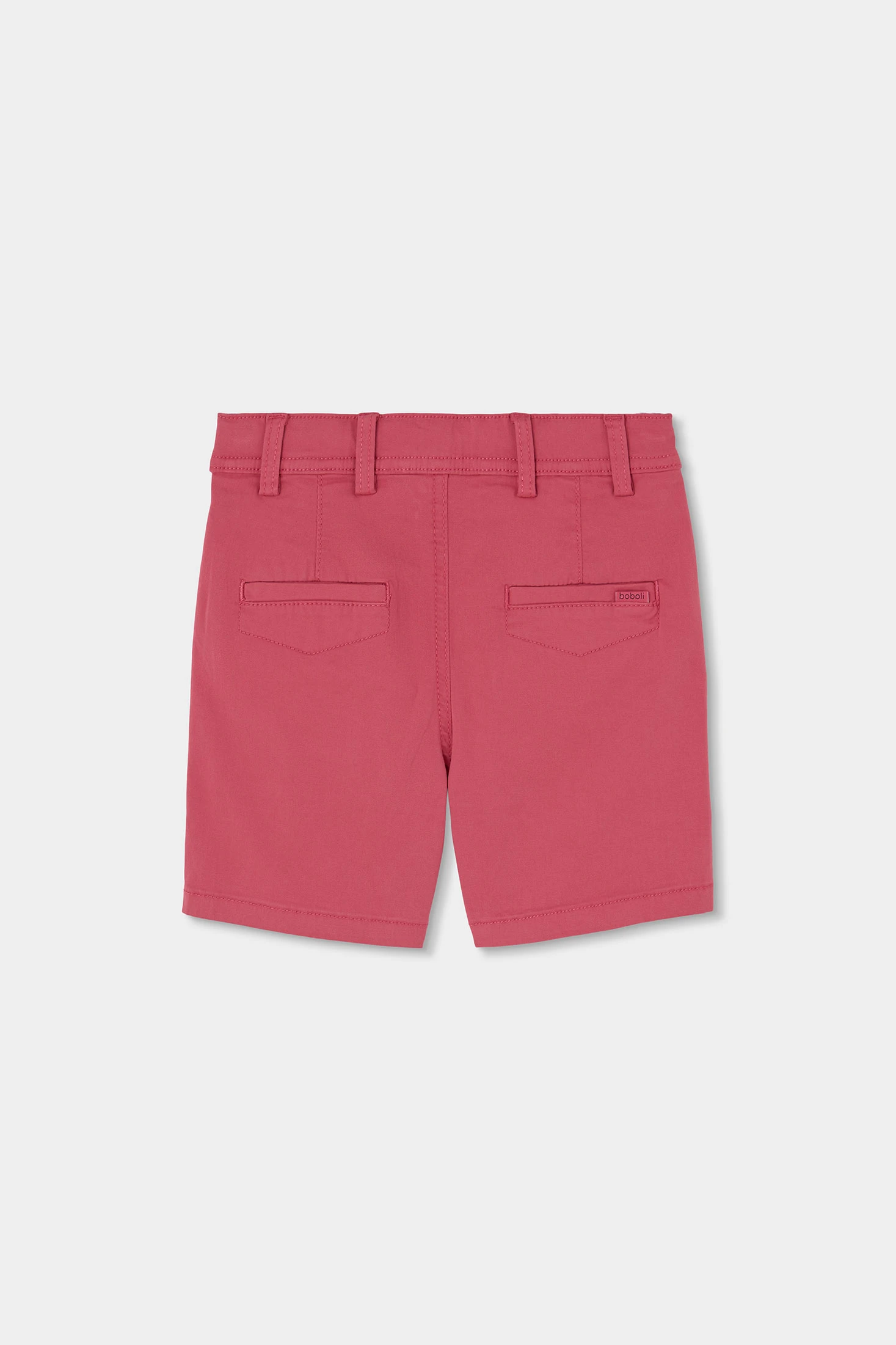 Cotton Bermuda shorts in strawberry colour, ideal for children, combining style and comfort. Their plain design offers versatility for different occasions. Made from cotton fabric, they are soft to the touch and cool for warm days. Available in sizes from 12 months to 10 years. The adjustable waistband and front pockets add functionality. Perfect for pairing with t-shirts or light blouses, they offer a fresh and modern look.